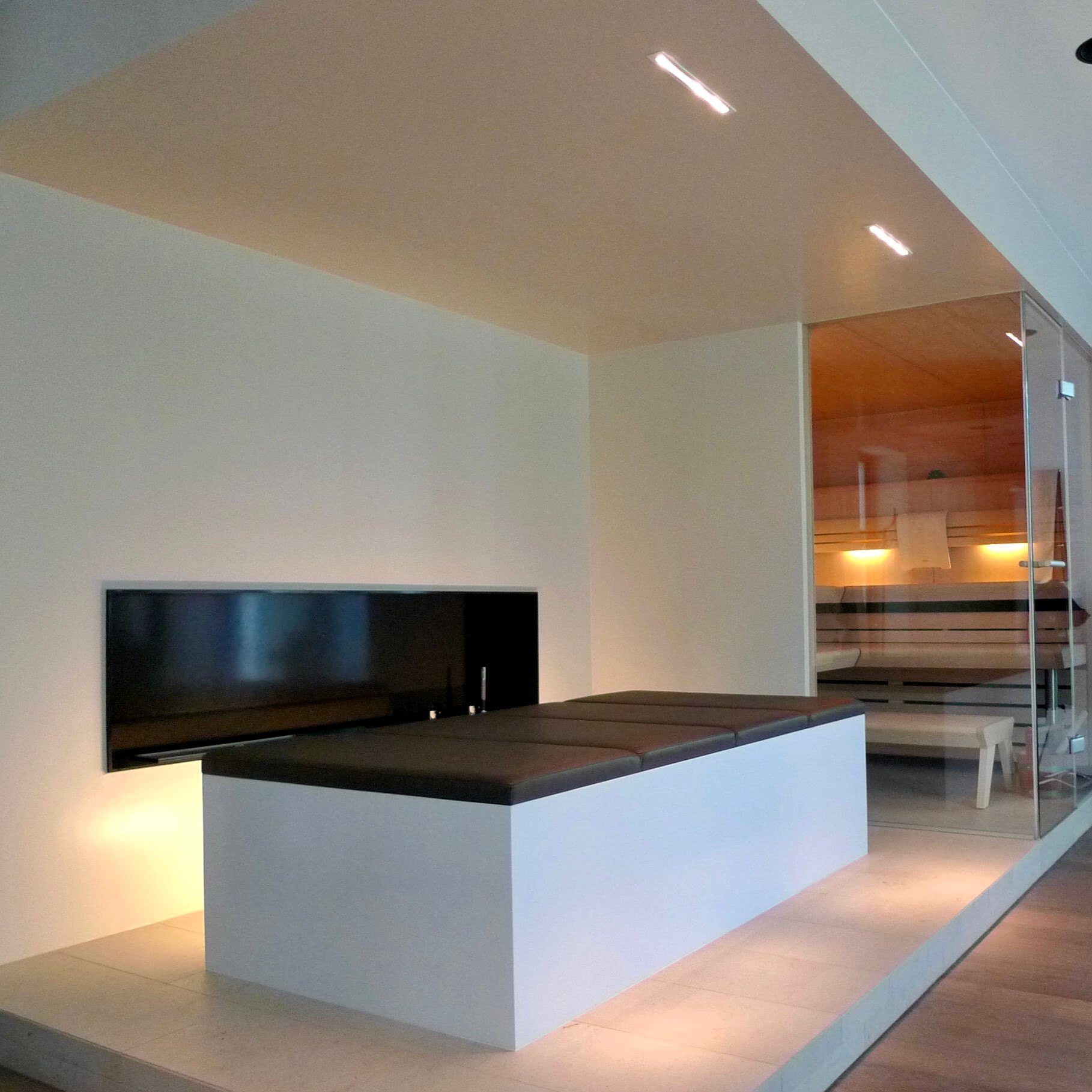 Um die idealen Bedingungen zum Entspannen zu schaffen haben wir in diesem Bad- und Wellnessbereich mit indirekter Beleuchtung gearbeitet um optimale Bedingungen zum Abschalten zu schaffen. Durch die in der indirekten Beleuchtung verbauten Technologie passt sich das Licht an seine Umgebung an und trägt ausschlaggebend dazu bei, dass man auch tatsächlich zur Ruhe kommt. Von Innen und von Außen.